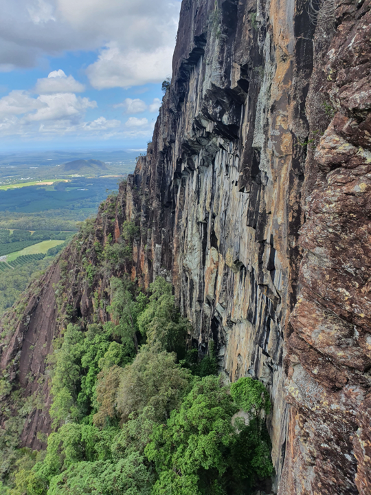 Looking up at the climb I was not quite as intimidated as I had been with Tibrogargan. It was steep, certainly, but didn’t seem quite as sheer. Perhaps this was the case, or maybe I was just mentally a little more prepared and experienced this time around. Probably a bit of both. I started climbing and, while it was far from easy, I certainly felt more comfortable overall. There were small rivulets of water trickling down the cliff face courtesy of the considerable rain we’ve had over the prior few weeks, which added a small degree of difficulty through slipperiness.